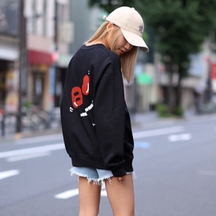 可愛いBJJロゴバックプリントのトレーナー。太めのスリーブがほどよいルーズ感とカジュアルさを演出。
